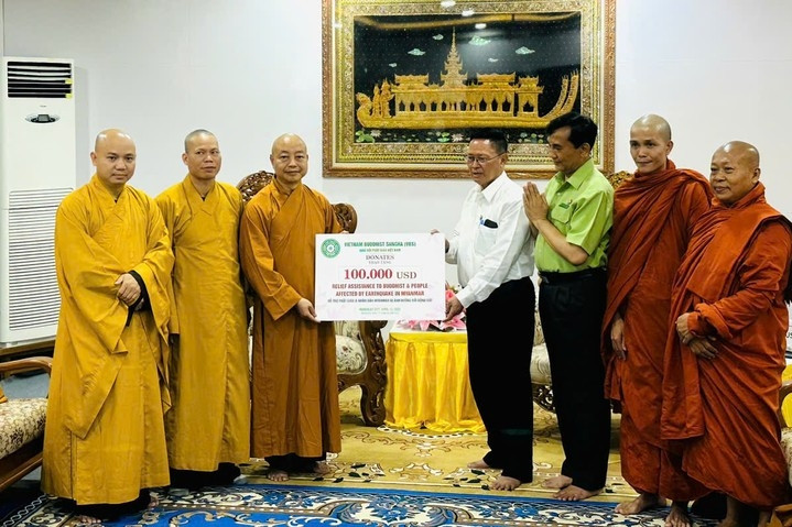 Nhân dịp này, Học viện Phật giáo Việt Nam tại Hà Nội tặng 20 suất quà tri ân và động viên tinh thần một số cựu chiến binh có hoàn cảnh khó khăn.