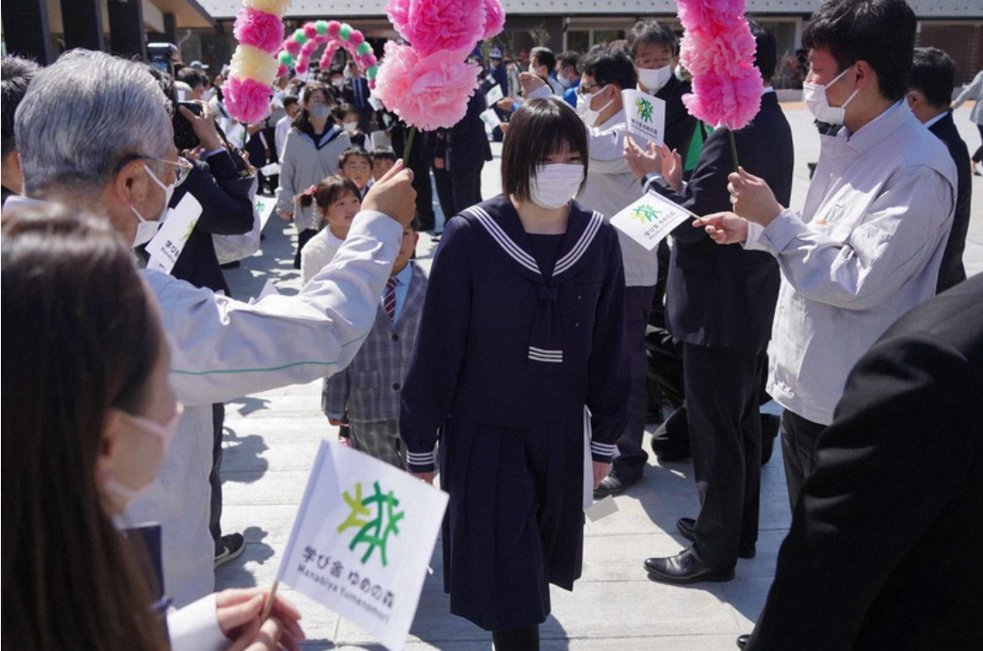 Trong tiết trời xuân rực rỡ, 26 em học sinh cùng khoảng 200 phụ huynh và người dân thị trấn đã tham dự lễ khai giảng năm học mới, trước thềm khai trương cơ sở giáo dục mới mang tên Manabiya Yumenomori- nơi phục vụ cho các em học sinh đến hết cấp THCS. Hầu hết trẻ em được sinh ra sau đại thảm họa và bây giờ mới bắt đầu trải nghiệm cuộc sống ở quê hương.