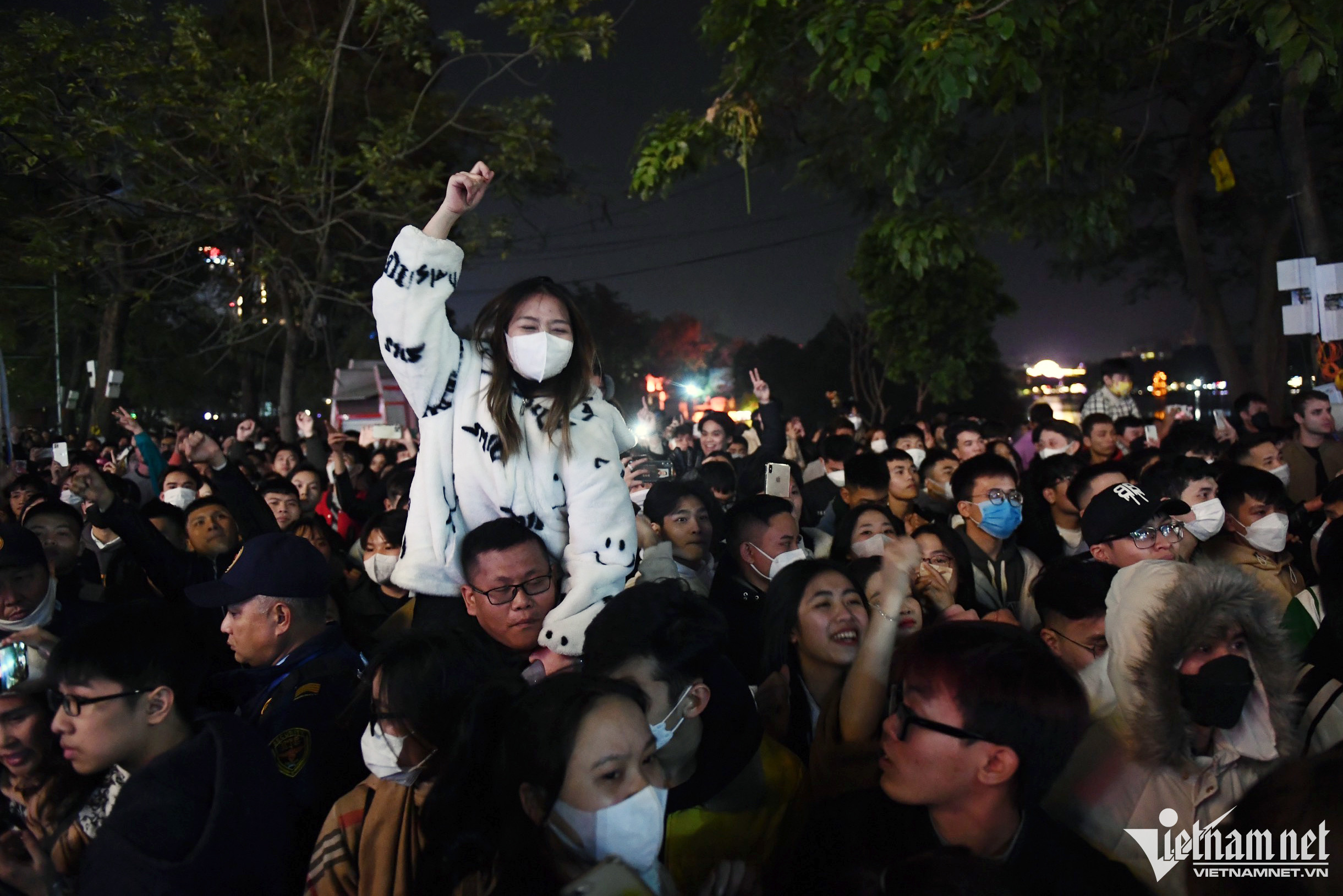 Tại phố đi bộ bên hồ Gươm (Hà Nội), tuy không có pháo hoa nhưng thời khắc chuyển giao giữa năm cũ và năm mới cùng màn đếm ngược diễn ra sôi động, những tiếng hò reo vang dội khiến nhiều người cảm thấy xúc động.
