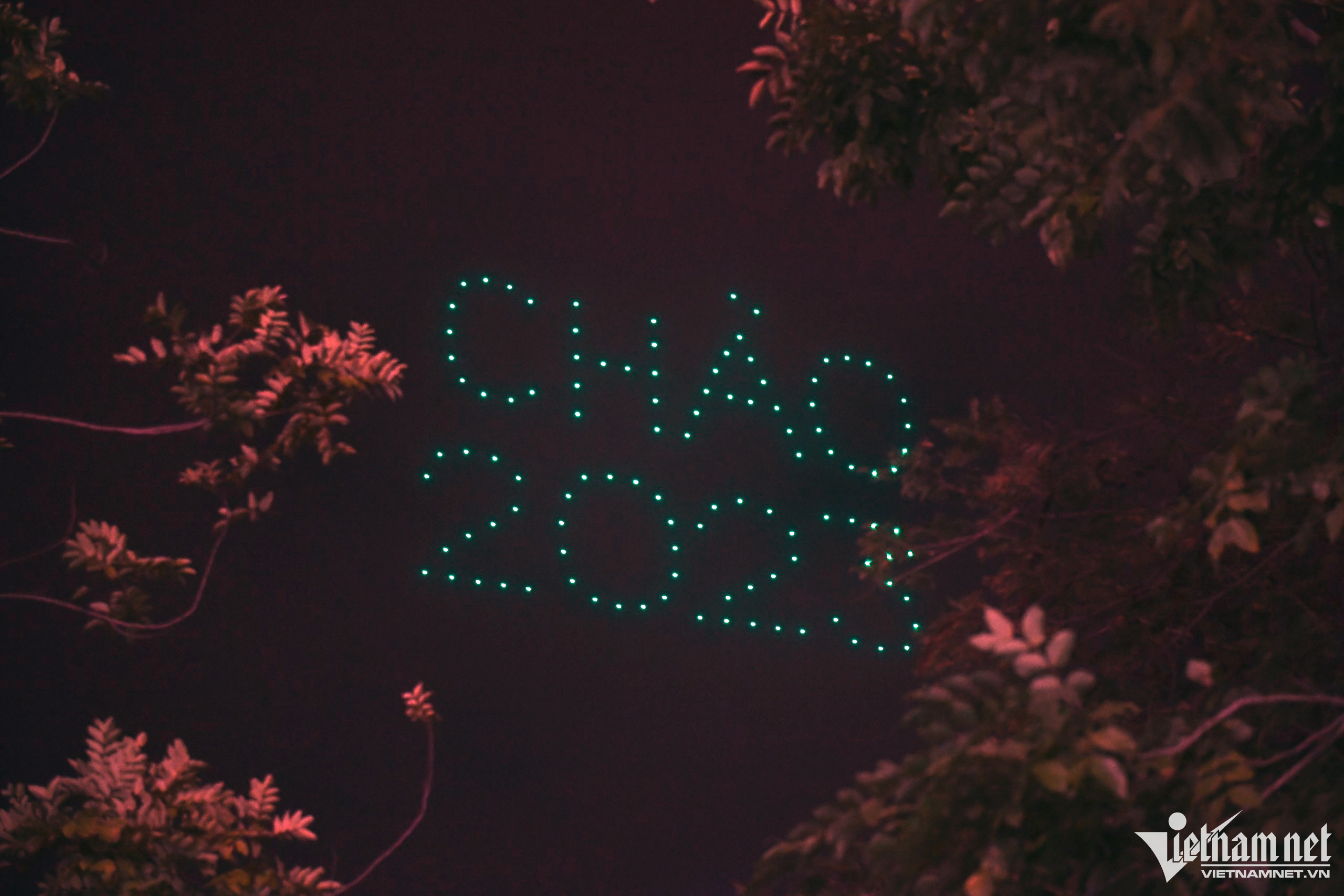 Đó là màn trình diễn ánh sáng bằng những chiếc drone độc đáo lúc 0h ngày 1/1. Đây là lần đầu tiên, Hà Nội có tiết mục này để chào năm mới.
