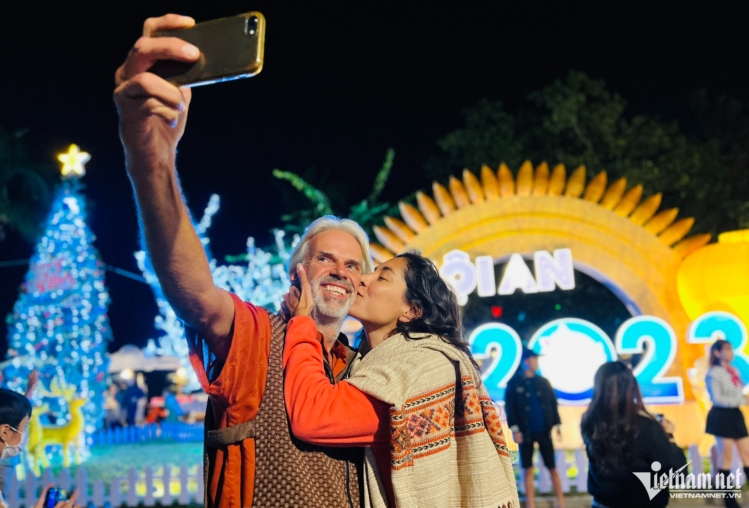Tại thành phố Hội An, những vị khách nước ngoài cũng bày tỏ tình cảm ở chốn đông người. Ảnh: Công Sáng.