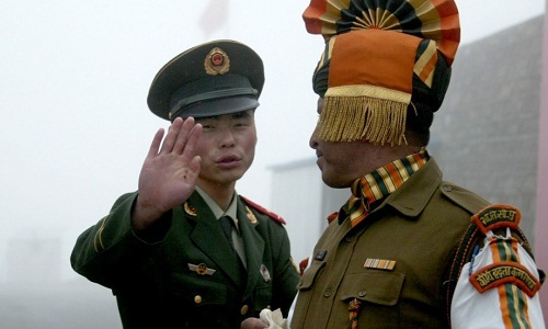 | Binh sĩ Trung Quốc và Ấn Độ mặt giáp mặt tại Doklam. Ảnh: SCMP |