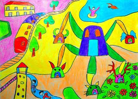 Bức tranh của em là một thế giới thật đẹp. trong đó chúng em dược vui chơi, được