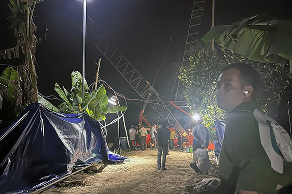 Tại hiện trường, hàng trăm người cùng các phương tiện đã được triển khai để cứu bé trai.