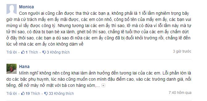 Cùng với đó, có những người cho rằng không nên công khai danh tính của thí sinh được nâng điểm bởi tương lai các em còn rất dài. Việc công khai danh tính sẽ ảnh hưởng đến tương lai, bị bạn bè xa lánh, ghét bỏ...