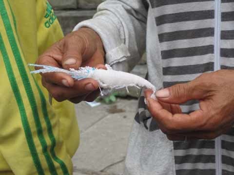 Dặn dò mẹ vài câu rồi trao vội con tôm tự đan bằng dây nhựa cho em trai, Hiền lầm lũi lên xe tù về trại giam.