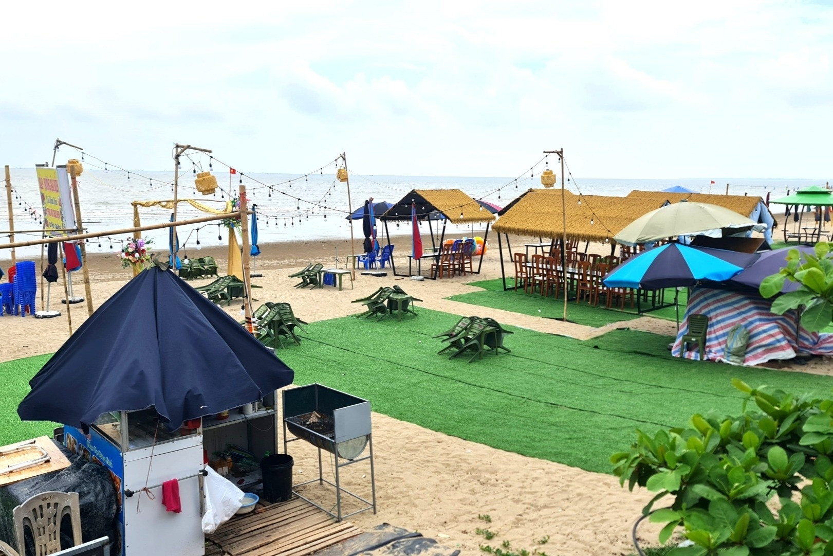 Các hộ chia từng ô, dựng lều, lán, bày các loại bàn ghế để bán đồ ăn, uống phục vụ khách du lịch. Nhiều hộ còn tự quây tôn làm các phòng tắm tráng (tắm nước ngọt) ngay tại bãi biển, tạo nên khung cảnh nhếch nhác. Khách xuống biển tắm phải đi qua những gian hàng, tạo cảm giác bất tiện…