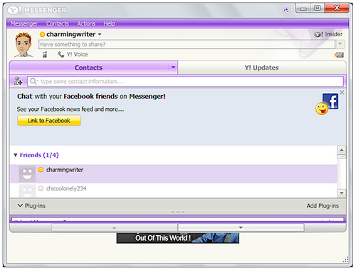 - Cập nhật trạng thái, xem thông tin mới từ bạn bè trên Facebook hay Twitter ngay trên YM. Bạn có thể "like" hay gửi lời nhắn (comment) trực tiếp. Dữ liệu giữa các mạng sẽ được đồng bộ ngay lập tức.