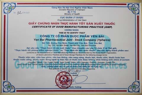tổ chức Y tế thế giới (GMP-WHO) do Cục quản lý dược - Bộ Y Tế cấp.