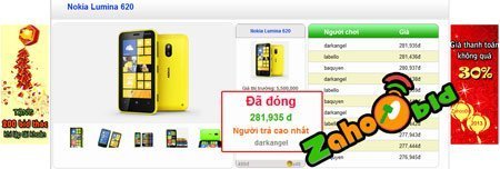 Trong tuần thứ 3 của sự kiện vừa qua, Zahoo BID đã tổ chức đấu giá chiếc điện thoại Lumia 620 - sản phẩm Window 8 mới nhất của Nokia, và người chiến thắng đã sở hữu tuyệt tác này với mức giá chỉ 280.000 đồng, tương đương 5% giá thị trường của sản phẩm.