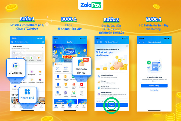 Mở “Tài Khoản Tích Lũy” nhanh chóng, đơn giản, bất kỳ ai cũng có thể thao tác một cách dễ dàng. Theo đó, người dùng mở ZaloPay hoặc với những người chưa tải ZaloPay có thể truy cập vào ứng dụng Zalo, chọn mục “Khám phá”, chọn tiếp biểu tượng ZaloPay, chọn biểu tượng “Tài Khoản Tích Lũy” để thực hiện các thao tác đăng ký. Sau khi hoàn tất, hãy nạp tiền vào tài khoản để bắt đầu tích lũy. Để có nguồn tiền nạp vào “Tài Khoản Tích Lũy”, người dùng cũng cần mở ZaloPay hoặc mở ZaloPay trong Zalo để thực hiện “Liên Kết Ngân Hàng”. Việc liên kết tài khoản ngân hàng giúp dễ dàng nạp rút tiền, thanh toán các tiện ích, chuyển tiền dễ dàng.